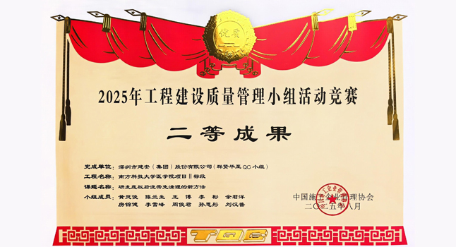 近日,2025年工程建设质量管理小组活动竞赛获奖名单正式公布。由建筑工程二公司负责承建的南方科技大学医学院项目Ⅱ标段凭借“研发底板后浇带免清理的新方法”课题在全国众多参赛项目中脱颖而出,荣获中国施工企业管理协会颁发的国家级二等成果。这一荣誉...